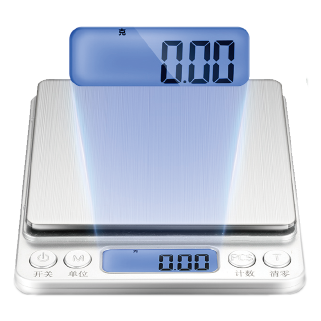 高精度芯片,搭配低功耗外围电路,用于烹饪时精确计量使用食物原料重量,可置零去皮。提供APP查看食物营养数据。