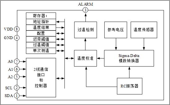 管脚兼容ADT75/LM75A/TMP75