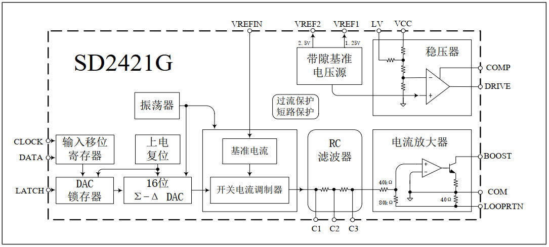 SD2421G是一款完整的环路供电型4-20mA 数模转换器,将数字数据转换成为电流,专为满足工业控制领域智能变送器制造商的需求而设计,其高集成、高精度、低成本解决方案,实现高分辨率 4-20mA 的智能变送器。